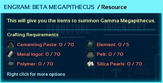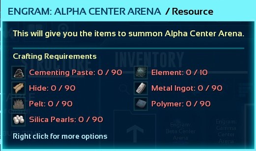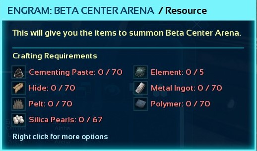 Author: Guardian4 Downloads: 832 File Size: 14.8 MB Created: 2026-01-02 Updated: 2026-01-02 Mod ID: 1101799 Copied to clipboard Categories: Structures Tribute Table The purpose of this mod is to provide an alternate way of getting the items required to summon the various Ark bosses. Description Images Engrams Items Tribute Table Images Gamma Megapithecus Resources Required Gamma Rockwell Resources Required Gamma Manticore Resources Required Gamma Dragon Resources Required Gamma Center Arena Resources Required Gamma Broodmother Resources Required Beta Rockwell Resources Required Beta Megapithecus Resources Required Beta Manticore Resources needed Beta Dragon Resources needed Beta Center Arena Resources needed Beta Broodmother Resources needed Alpha Rockwell Resources needed Alpha Megapiticus Resources needed Alpha Manticore Resources needed Alpha Dragon Resources needed Alpha Center Arena Resources needed Alpha Broodmother Resources needed Currently Support Maps This is the maps that are currently in the mod. Tribute Table This is a picture of the table that you craft.
