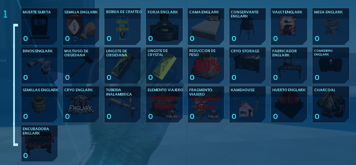 Author: EnglardR Downloads: 9,582 File Size: 388.7 MB Created: 2024-10-08 Updated: 2026-01-06 Mod ID: 1117152 Copied to clipboard Categories: Structures Weapons General EnglarkUtilities cryoEnglark, Vault, Seed Crafter, Encubator Egg, more... Description Images Engrams Items EnglarkUtilities Images Skin Cybor Skin Titan Fall Items Items CocinaEnglark Add New Structure CocinaEnglark. Seed Seed in Structure SemillasEnglark. Encubator Add EncubatorEnglark All Structures All structures in mod. Encubator Egg, HuertoEnglark, Seeds. Others. Icon_Mesa.png Icon_Mesa.png
