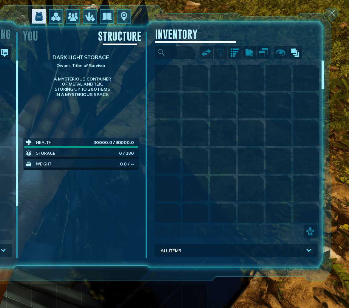 Author: Merlon Downloads: 211 File Size: 748.4 KB Created: 2024-11-14 Updated: 2025-05-29 Mod ID: 1139754 Copied to clipboard Categories: Structures Dark Light Storage A mysterious container of metal and tek, storing up to 280 items in a mysterious space. Description Images Engrams Items Dark Light Storage Images 1.png 1.png 2.png 2.png 3.png 3.png