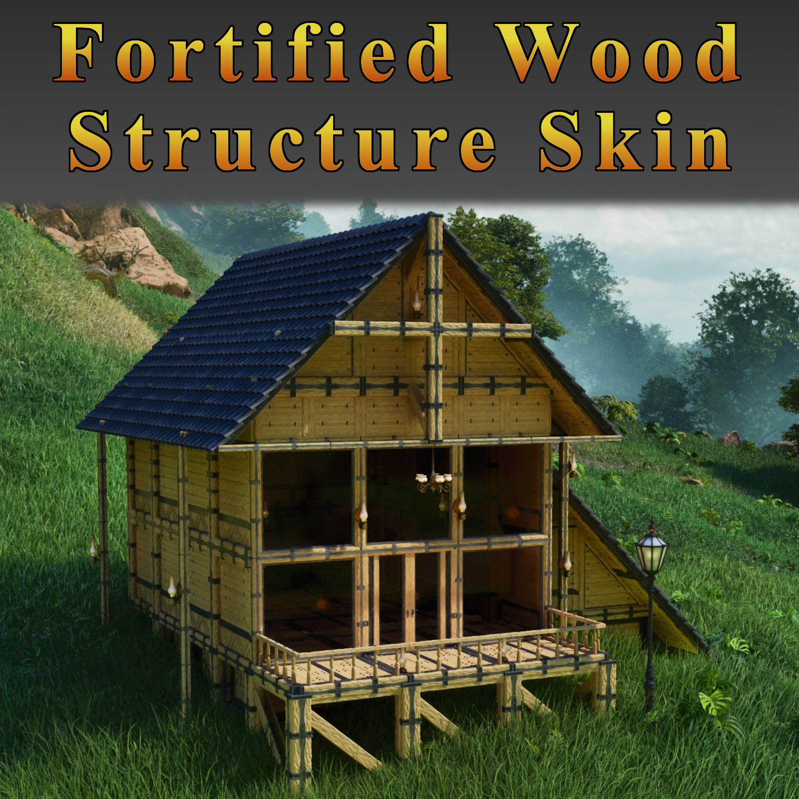 The following structures can be skinned with the Alternative Fortified Wood Structure Skin: Pillar, Thin Pillar, Beam, Thin Beam, Ramp, Roof, Half Pillar, Thin Half Pillar, Quarter Ramp, Quarter Roof, Ramp Corner, Roof Corner, Foundation, Quarter Foundation, Triangle Foundation, Ceiling, Quarter Ceiling, Triangle Ceiling