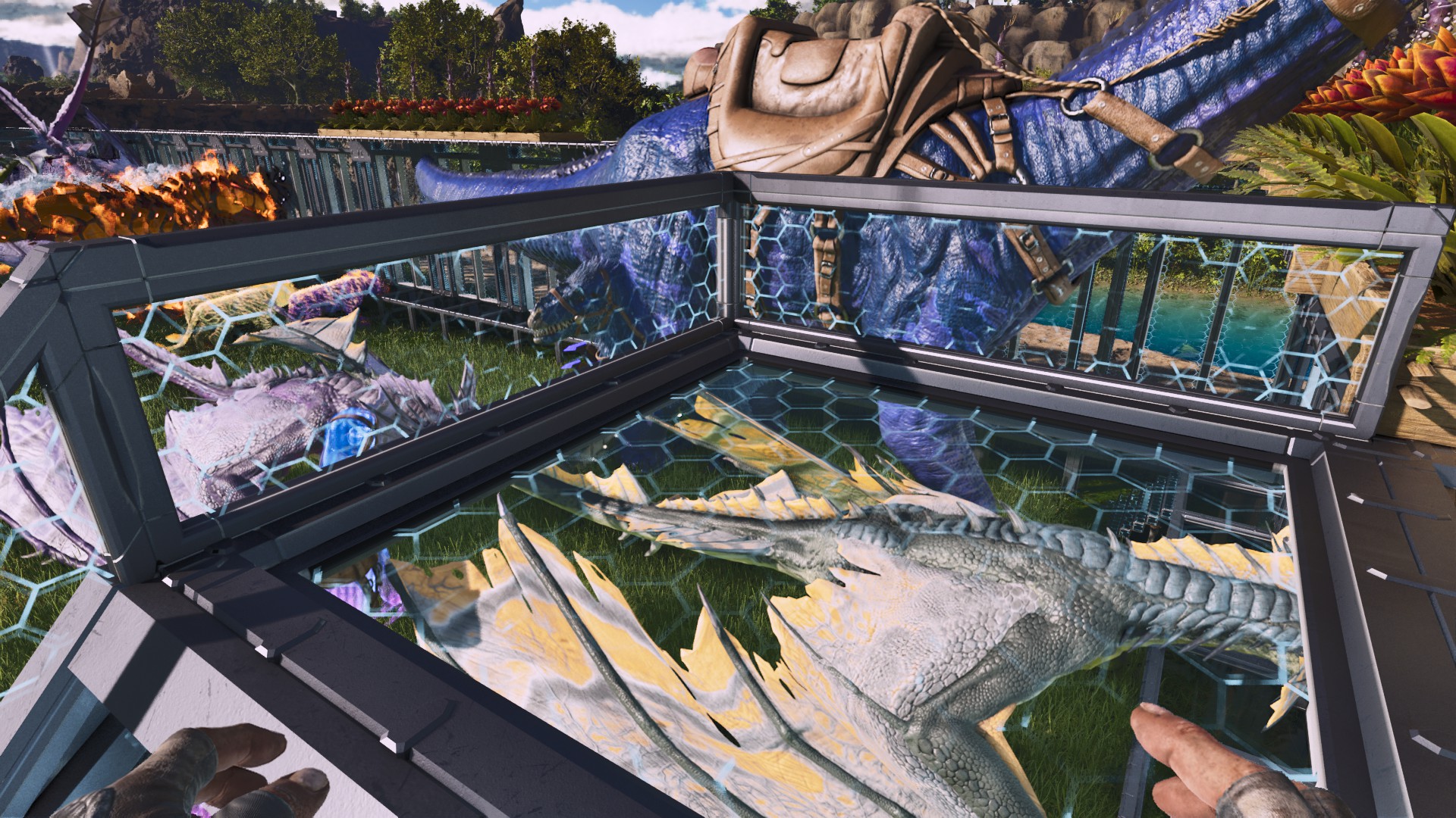 Painted base. Some Shiny! dinos caught in the shot. Vertical black columns are a different cosmetic mod.