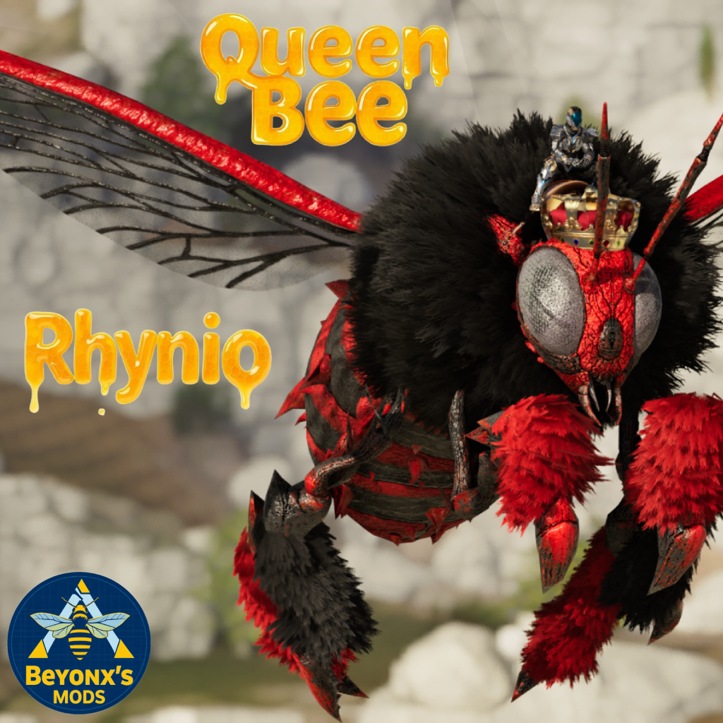 Transform your Rhyniognatha into the ultimate hive ruler with the Queen Bee Rhynio Costume! This mod introduces a majestic bee-themed cosmetic skin for your Rhyniognatha in Ark: Survival Ascended, giving it a stunning golden and black-striped exoskeleton, shimmering wings, and royal flair. Let your Rhynio rule the skies like a true Queen Bee! Download now and make your hive proud!