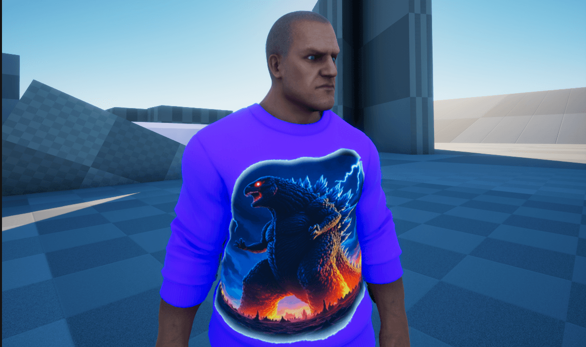 Author: horrgamer Downloads: 18,123 File Size: 8.9 MB Created: 2025-05-06 Updated: 2025-05-26 Mod ID: 1259654 Copied to clipboard Categories: Custom Cosmetics CustomGodZillaTopSkin Character Skin hoodie forthe custom cosmetics Description Images CustomGodZillaTopSkin Images fem2.png fem2.png GodZillaFem.png GodZillaFem.png