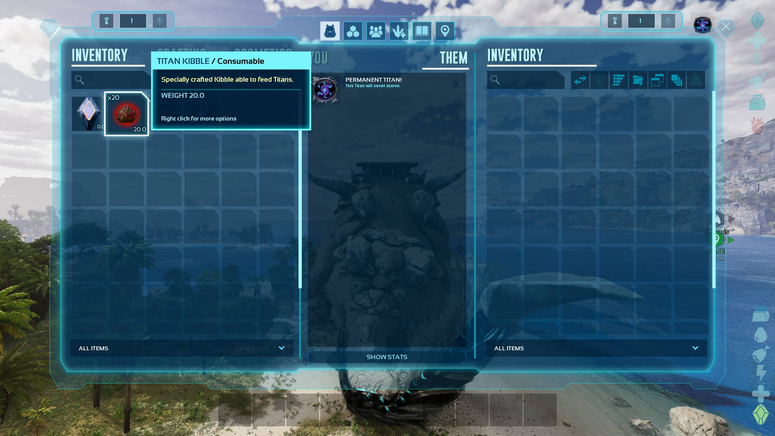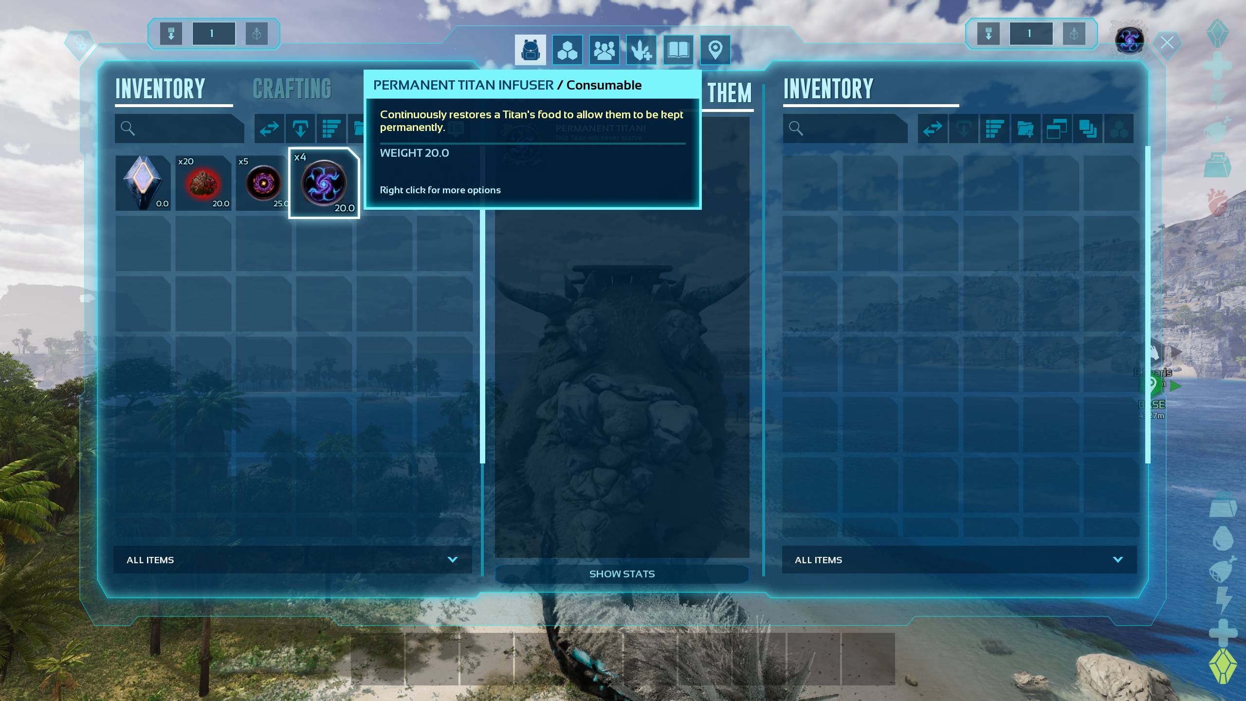 Adds items which can feed titans, allowing them to be kept longer or even make them permanent.