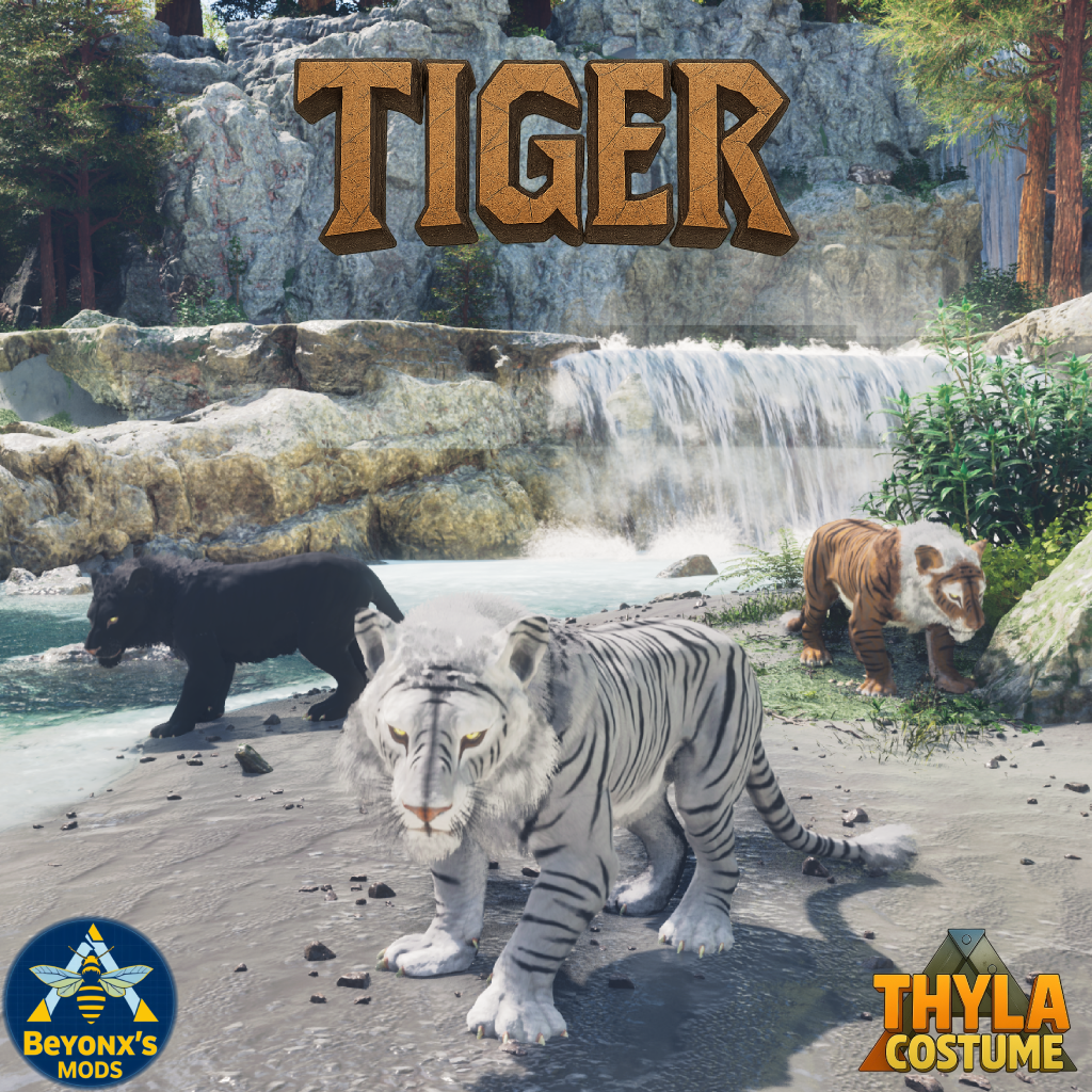Unleash the primal power of the jungle with the Atlas Tiger Costume for your Thylacoleo! This custom mod transforms your Thyla into the majestic and fearsome Tiger from Atlas — a striped apex predator, revered in ancient legends and feared in every biome. With piercing eyes, powerful shoulders, and a coat that blends seamlessly into the shadows of the wild, your Thyla becomes the ultimate silent stalker.