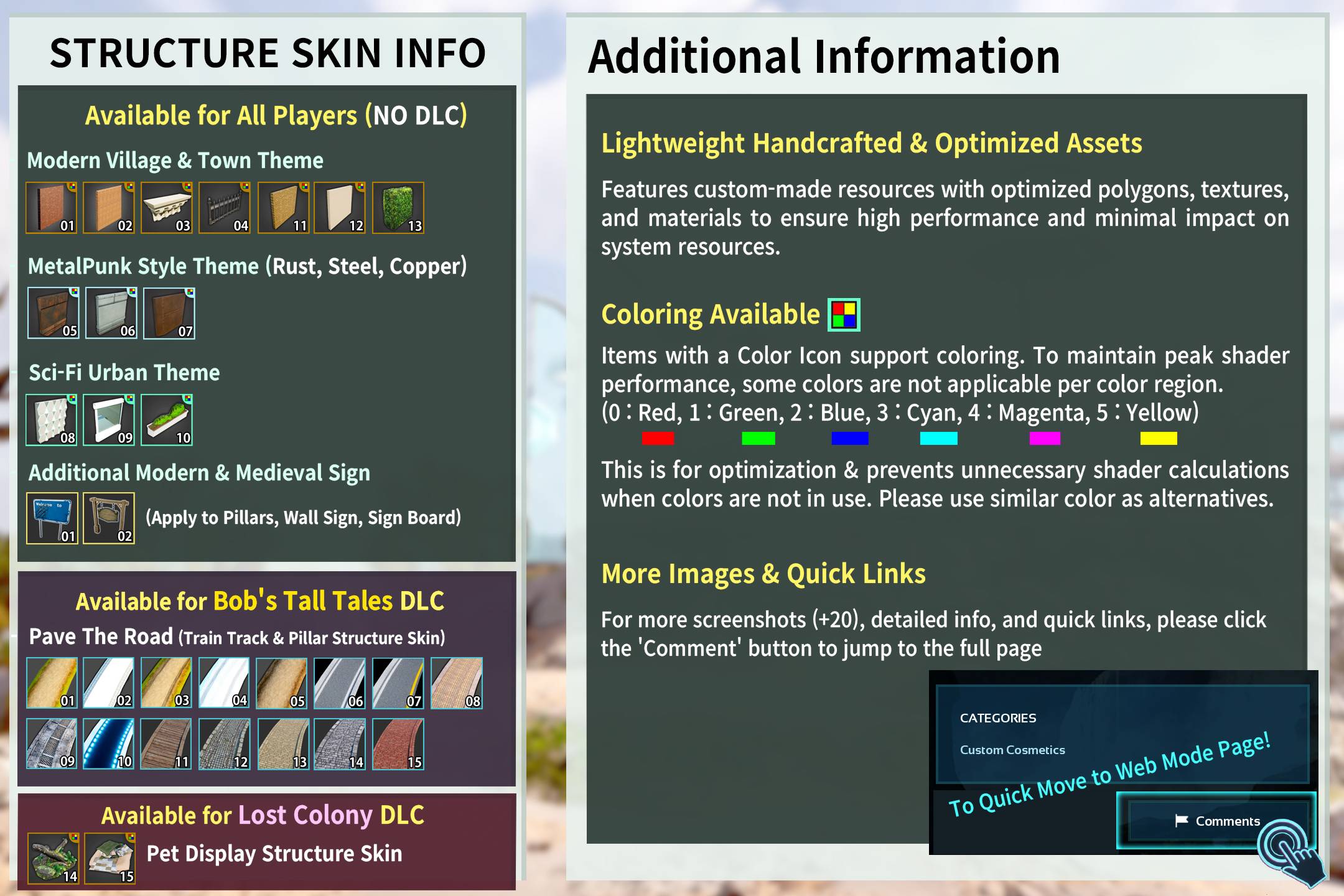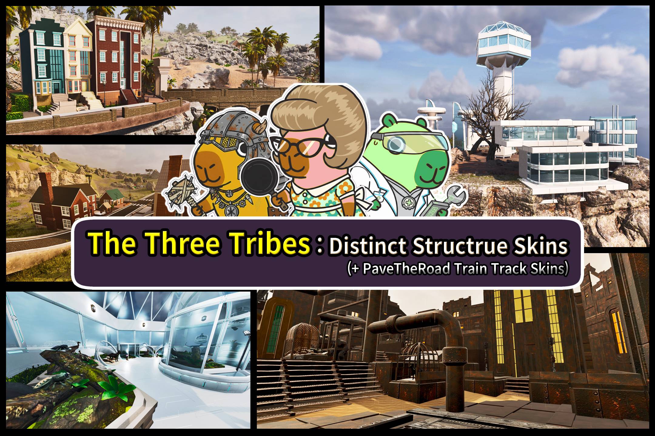 Tribe Scale Structure Skin With Various Themes, Modern, Steampunk, Futuristic Sci-fi, Rust, Modern Village, Train Track, Pet Display Structure skin Included