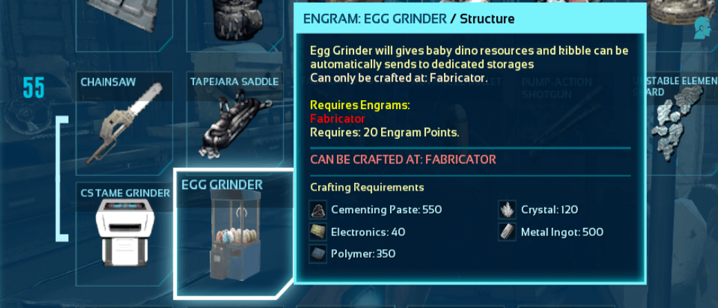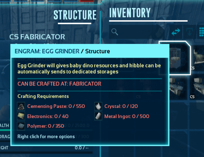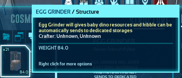 Author: iPoNet Downloads: 8,200 File Size: 6.1 MB Created: 2025-09-15 Updated: 2025-09-15 Mod ID: 1345441 Copied to clipboard Categories: General Structures Egg Grinder [Open Source] Turns your fertilzed egg to kibble and resources then send to dedicated storages Description Images Engrams Items Egg Grinder [Open Source] Images Screenshot 2025-09-13 020805.png Screenshot 2025-09-13 020805.png Screenshot 2025-09-13 021528.png Screenshot 2025-09-13 021528.png Screenshot 2025-09-13 021632.png Screenshot 2025-09-13 021632.png Screenshot 2025-09-13 020957.png Screenshot 2025-09-13 020957.png Screenshot 2025-09-13 021158.png Screenshot 2025-09-13 021158.png Screenshot 2025-09-13 021220.png Screenshot 2025-09-13 021220.png Screenshot 2025-09-13 021307.png Screenshot 2025-09-13 021307.png Screenshot 2025-09-13 021324.png Screenshot 2025-09-13 021324.png Screenshot 2025-09-13 021340.png Screenshot 2025-09-13 021340.png Screenshot 2025-09-13 021616.png Screenshot 2025-09-13 021616.png Screenshot 2025-09-13 021616.png Screenshot 2025-09-13 021616.png Screenshot 2025-09-13 021220.png Screenshot 2025-09-13 021220.png Screenshot 2025-09-13 022907.png Screenshot 2025-09-13 022907.png Screenshot 2025-09-13 022907.png Screenshot 2025-09-13 022907.png