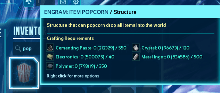 Author: iPoNet Downloads: 488 File Size: 76.0 MB Created: 2025-09-15 Updated: 2025-09-15 Mod ID: 1346832 Copied to clipboard Categories: Structures General Item Popcorn [OpenSource] Structure that can popcorn drop all items into the world Description Images Engrams Items Item Popcorn [OpenSource] Images Screenshot 2025-09-15 145643.png Screenshot 2025-09-15 145643.png Screenshot 2025-09-15 145625.png Screenshot 2025-09-15 145625.png Screenshot 2025-09-15 145523.png Screenshot 2025-09-15 145523.png Screenshot 2025-09-15 145442.png Screenshot 2025-09-15 145442.png Screenshot 2025-09-15 145344.png Screenshot 2025-09-15 145344.png