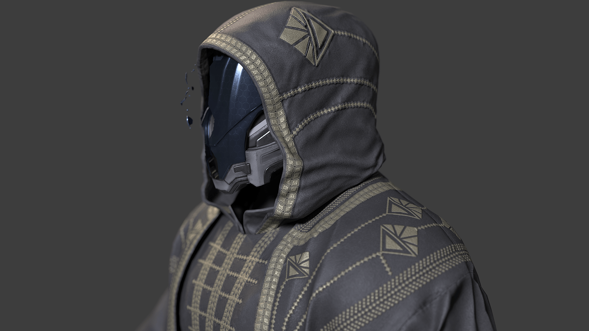 A broken Terran Federation tek-reinforced worn by none other than nanOS himself- with hood to match!
