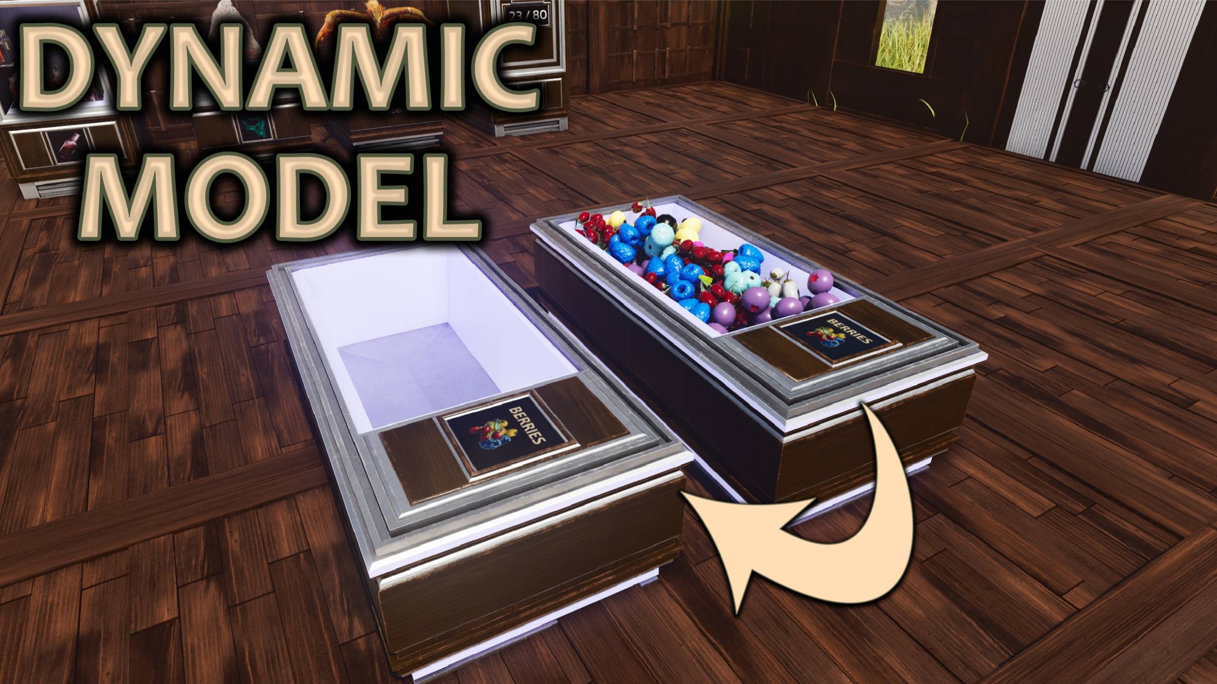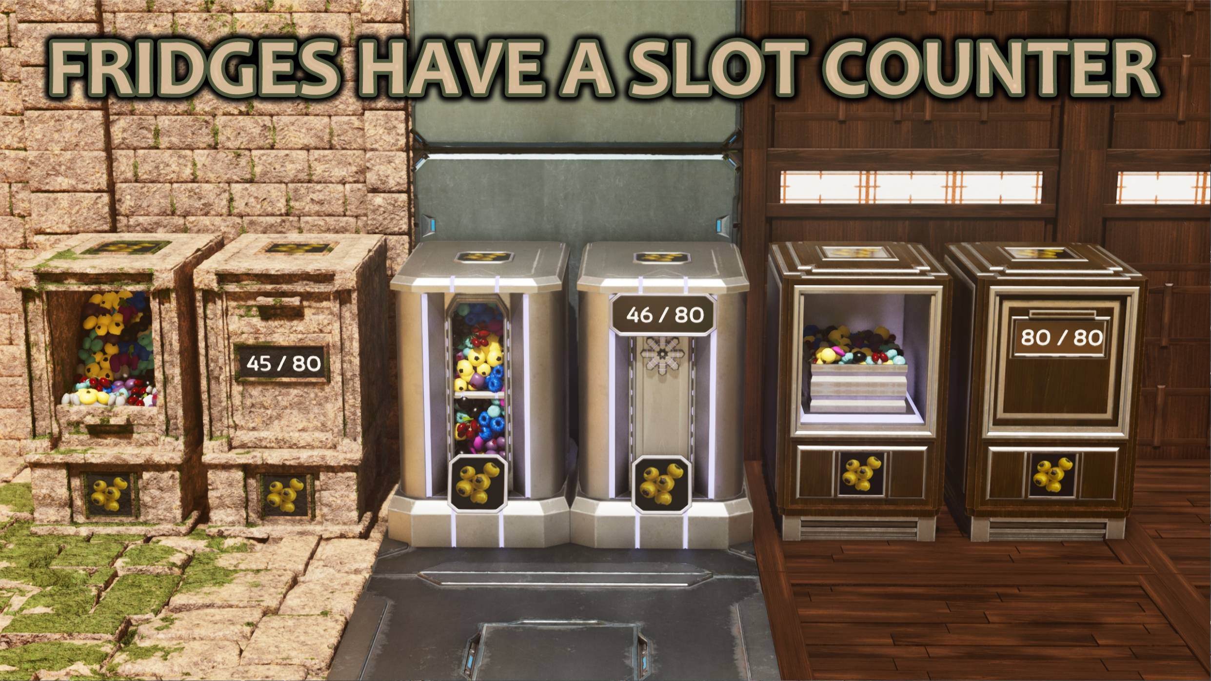 Custom Cosmetic containing skins of Fridges and Troughs, with selection of different icons for display for organization