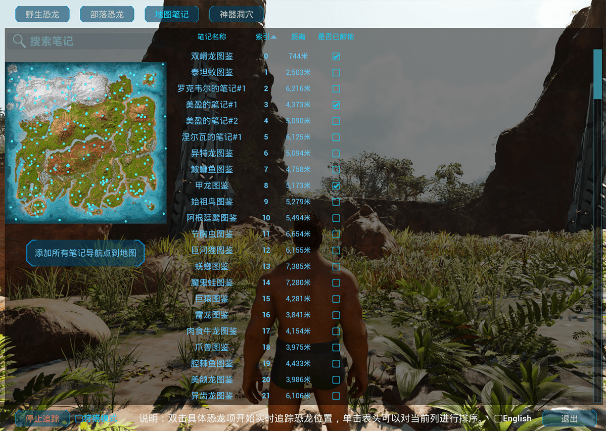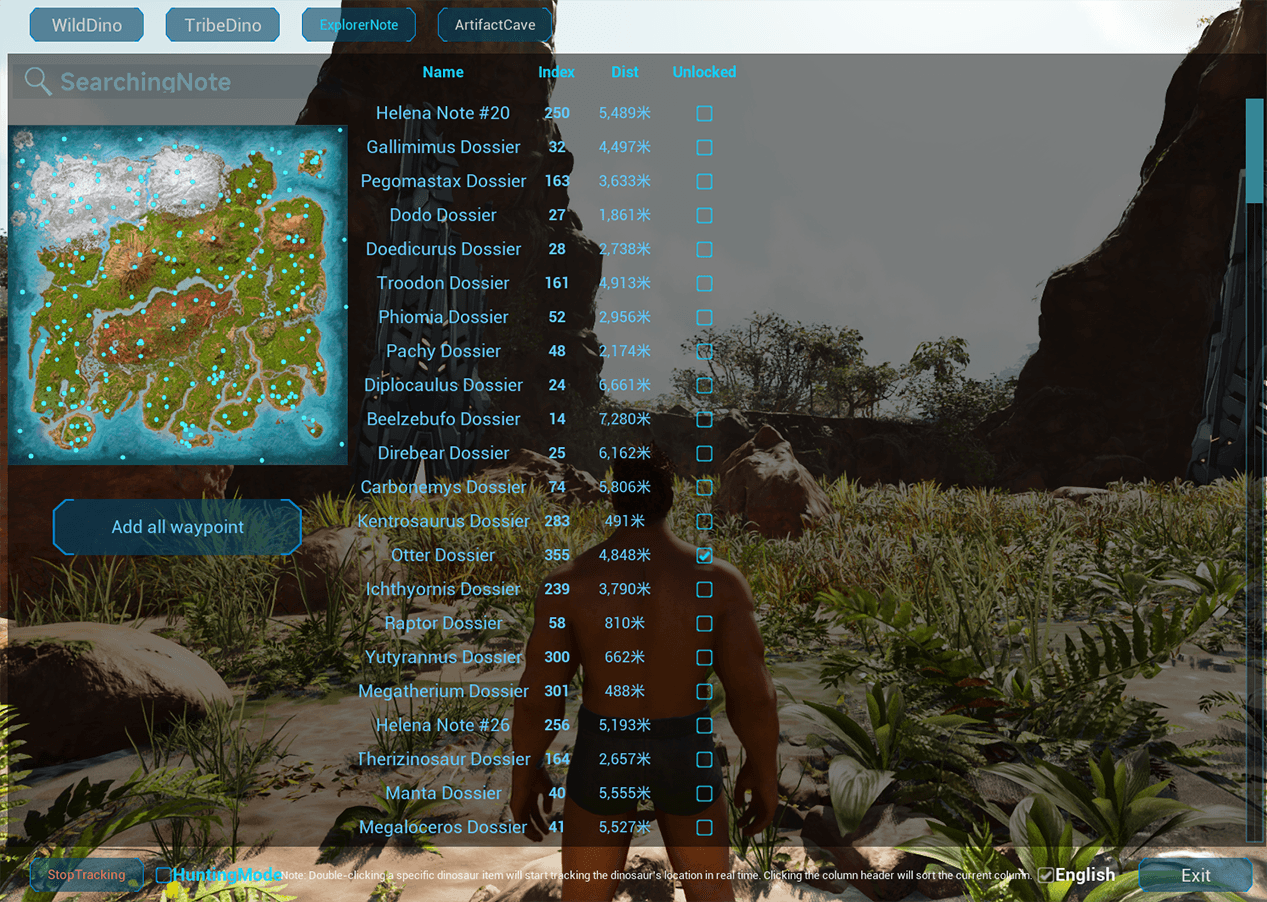 Author: FengQi Downloads: 23,821 File Size: 1.0 MB Created: 2026-02-12 Updated: 2026-03-10 Mod ID: 1460394 Copied to clipboard Categories: General Game Modes Creatures Weapons Fq Dino Finder It supports searching for wild dino, tribe dino, explorer notes, and cave locations on the map. It also supports real-time location tracking, conditional search, data sorting, and more. Description Images Engrams Items Fq Dino Finder Images ç¶æè¿½è¸ª.png ç¶æè¿½è¸ª.png éçæé¾.png éçæé¾.png ç¥å¨æ´ç©´.png ç¥å¨æ´ç©´.png æé¾è¿½è¸ª.png æé¾è¿½è¸ª.png å°å¾ç¬è®°.png å°å¾ç¬è®°.png é¨è½æé¾.png é¨è½æé¾.png ç¬è®°è¿½è¸ª.png ç¬è®°è¿½è¸ª.png WildDino.png WildDino.png ExplorerNote.png ExplorerNote.png ArtifactCave.png ArtifactCave.png