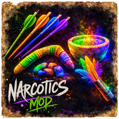 - Compatible with most mods unless they heavily modify narcotics or weapon systems
