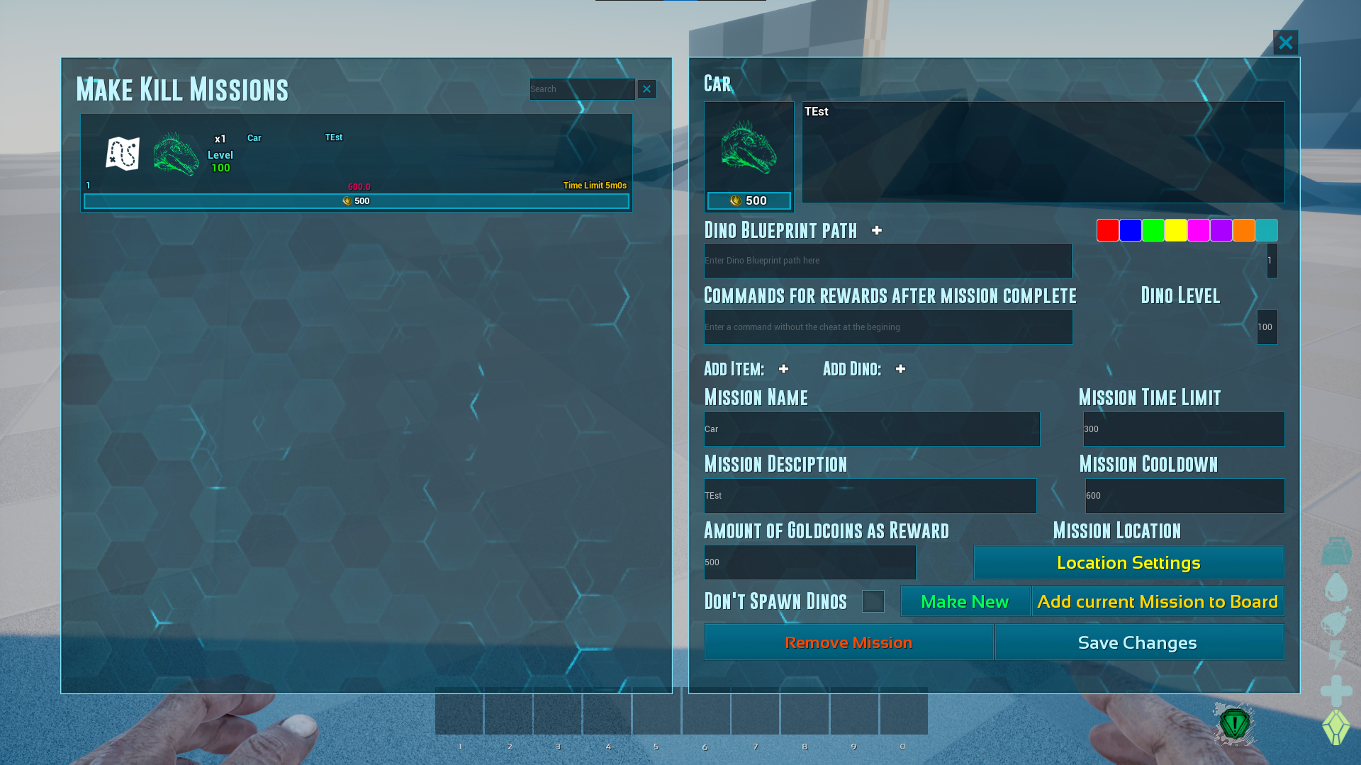 Author: kavan87 Downloads: 500,176 File Size: 2.2 MB Created: 2024-01-07 Updated: 2025-06-12 Mod ID: 932943 Copied to clipboard Categories: General Kavan's Shop & Missions This mod offers a Shop , Missions and the possiblity to crate Missions and almost everything is configurable. Description Images Items Kavan's Shop & Missions Images World Buff Admin menu Creating Kill Mission Baby and Egg Spawner creation menu Dino Spawner creation menu Lootbox creation Menu Inventory Menu and Admin options Multi use Exchange Shop