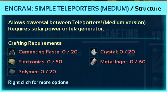 Modified vanilla teleporters (no Element required, cheaper crafting cost, place everywhere)