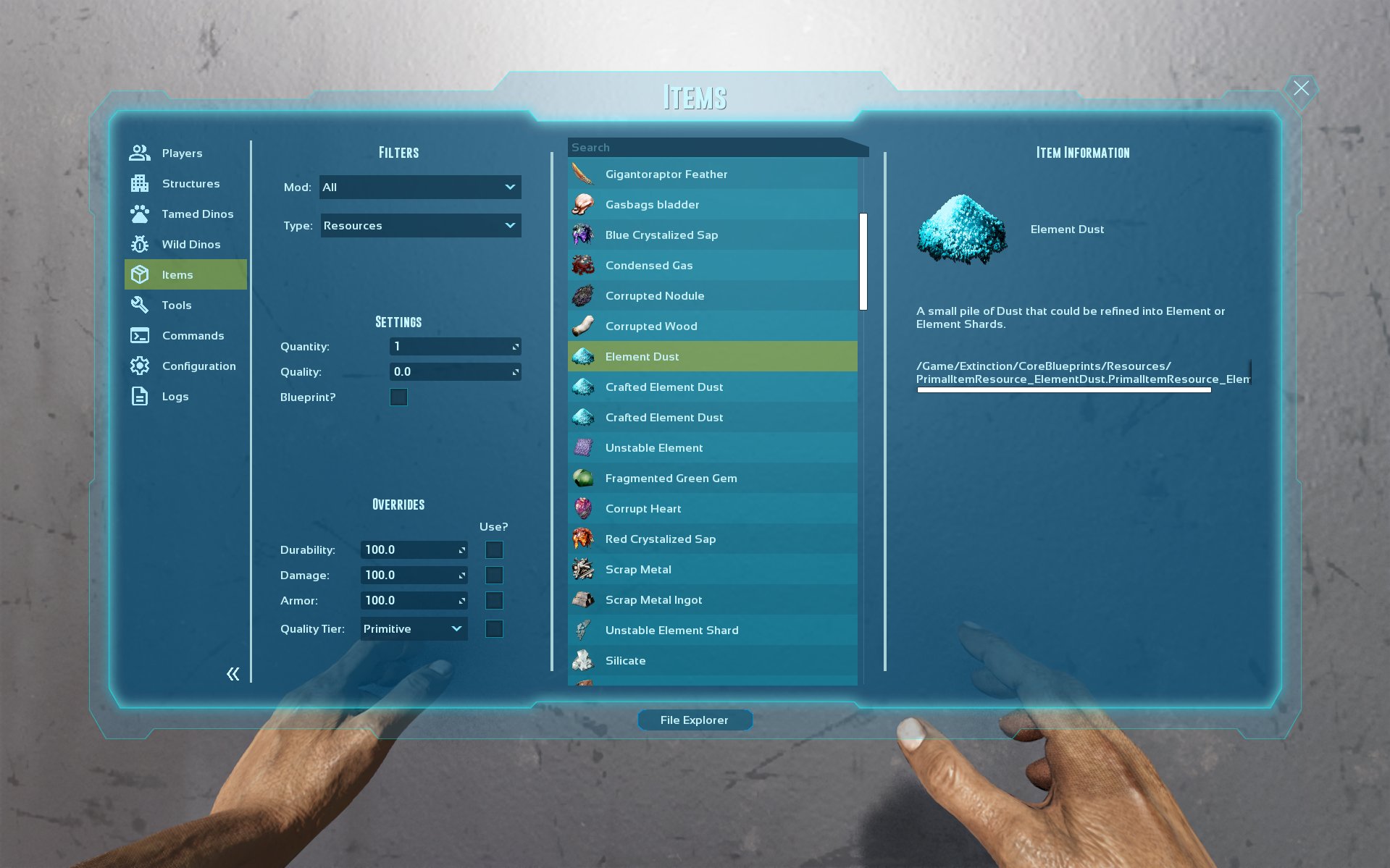Can look through every file in the game. Just a little extra feature. Could be used to search for paths of certain things