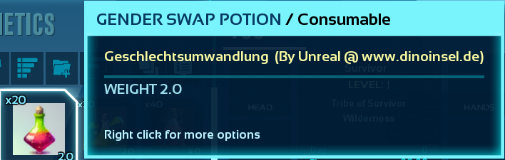 Embark on an enhanced gaming experience with our ARK: Survival Ascended Modpack on www.Dinoinsel.de, introducing new potions such as the Love and Speed Potions, along with the Gender Swap Potion, elevating the survival adventure to new heights.