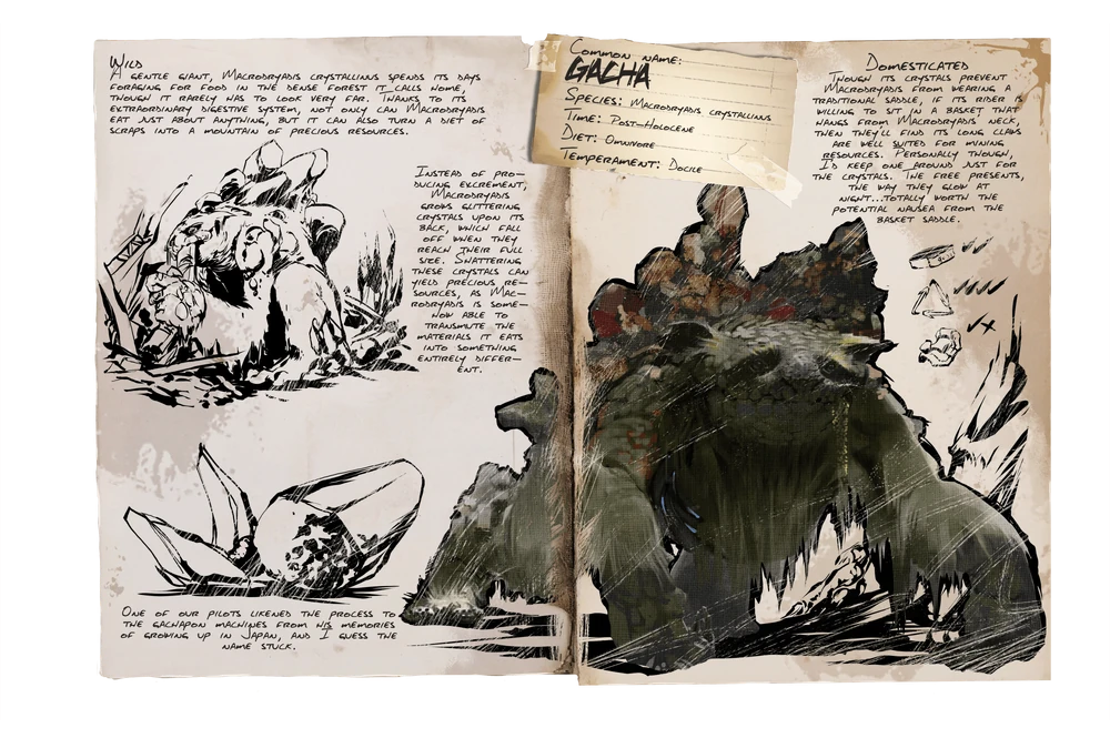 This mod adds Mountain Gachas into Ark Survival Ascended. They are the same as their vanilla counsins, except they will spawn the same locations as Megatheriums on The Island. They also have their own saddle which can be learned from level 50 and is craftable in a player's inventory.