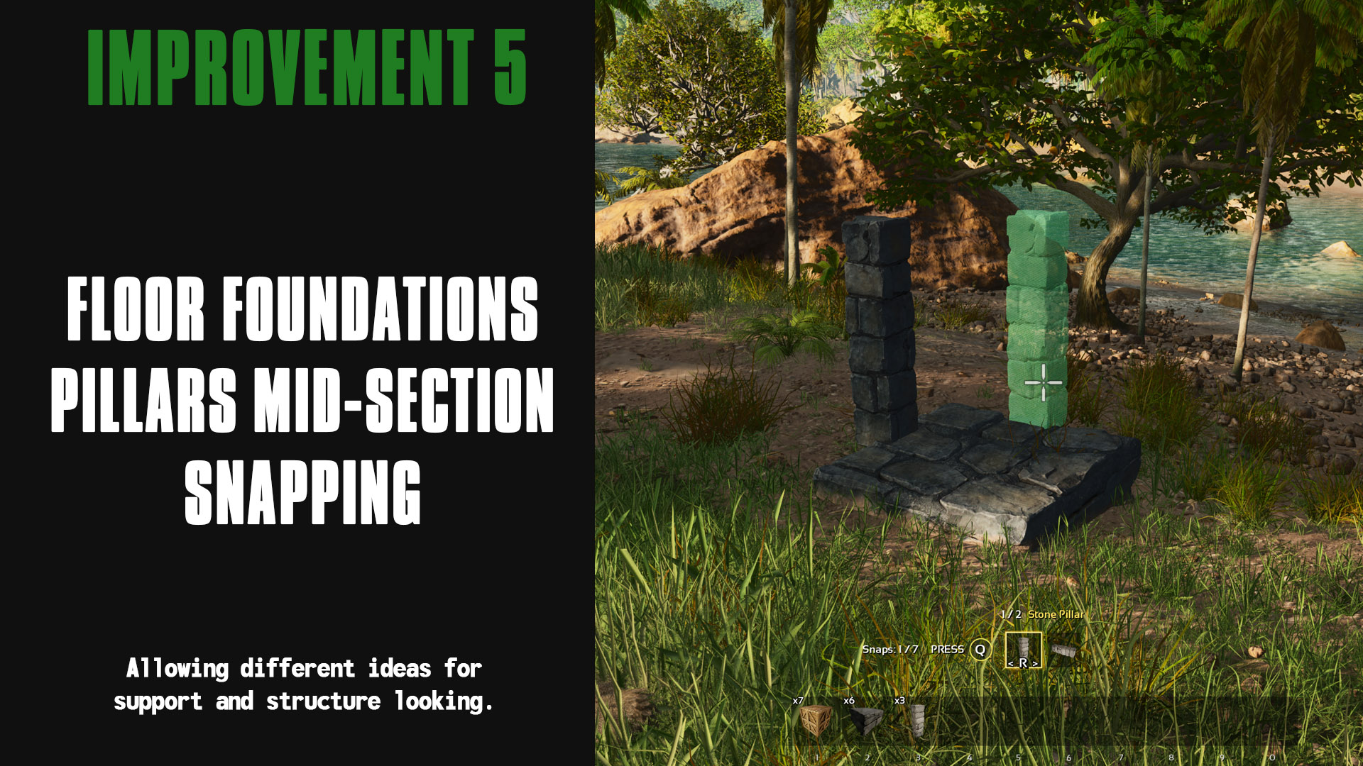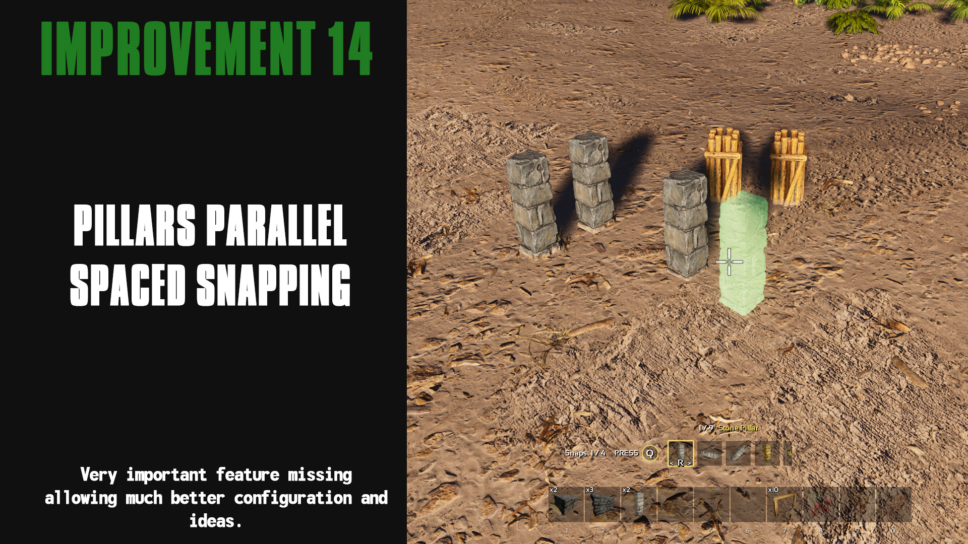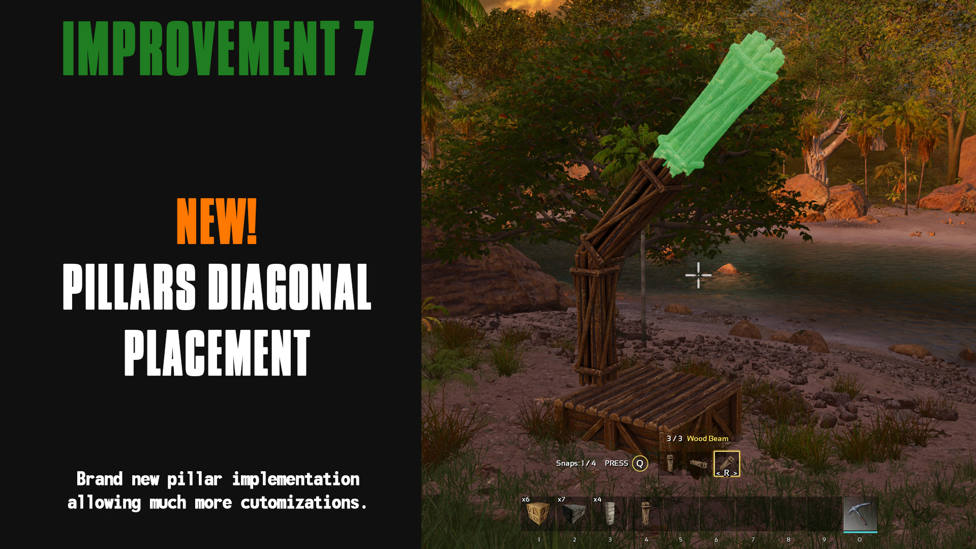 Author: Ketaros Downloads: 152,401 File Size: 207.9 MB Created: 2024-01-15 Updated: 2025-05-26 Mod ID: 961155 Copied to clipboard Categories: General Structures Ketaros Advanced Building This mod allows you to build with much more freedom. Description Images Engrams Items Ketaros Advanced Building Images Stone Variations Wood Variations Pillar Full Height Pillar Parallel Snap Mid-Length Walls Fence Staacking Fence Support Height Foundation Full Heght Fence Foundation Height Pillars Without Foundation Diagonal Pilar Beams Absolute Bottom Pillars Mid-Section Over-Placement Mid-Level Snaapping On-Top Snapping Mid Length Snapping