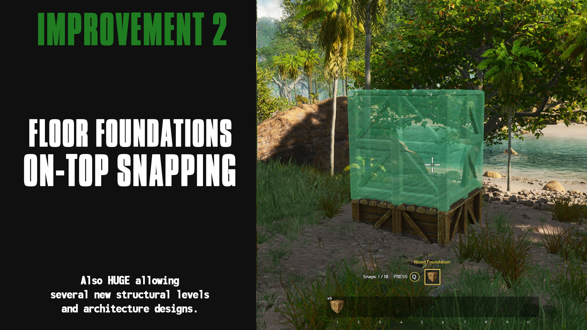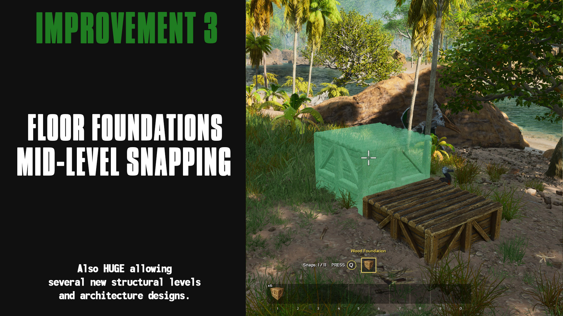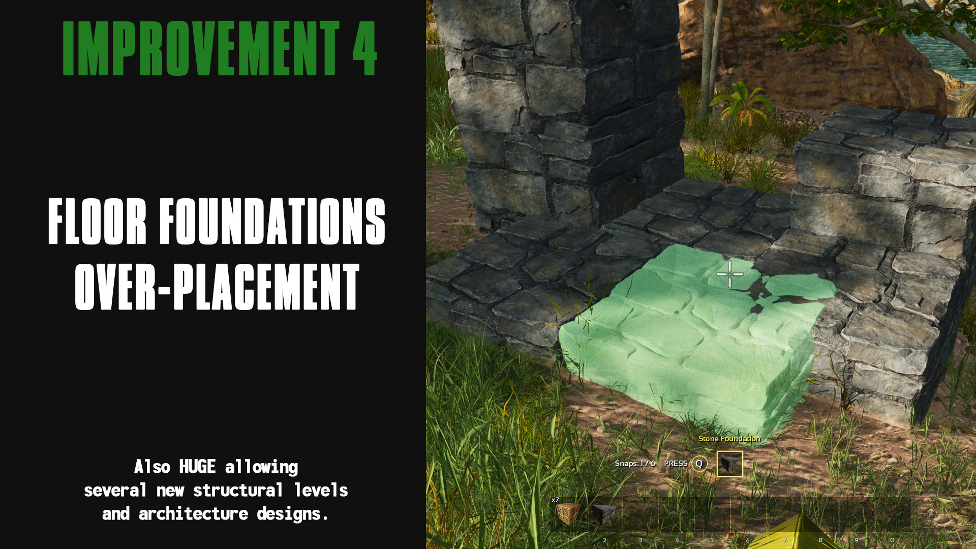Author: Ketaros Downloads: 152,401 File Size: 207.9 MB Created: 2024-01-15 Updated: 2025-05-26 Mod ID: 961155 Copied to clipboard Categories: General Structures Ketaros Advanced Building This mod allows you to build with much more freedom. Description Images Engrams Items Ketaros Advanced Building Images Stone Variations Wood Variations Pillar Full Height Pillar Parallel Snap Mid-Length Walls Fence Staacking Fence Support Height Foundation Full Heght Fence Foundation Height Pillars Without Foundation Diagonal Pilar Beams Absolute Bottom Pillars Mid-Section Over-Placement Mid-Level Snaapping On-Top Snapping Mid Length Snapping