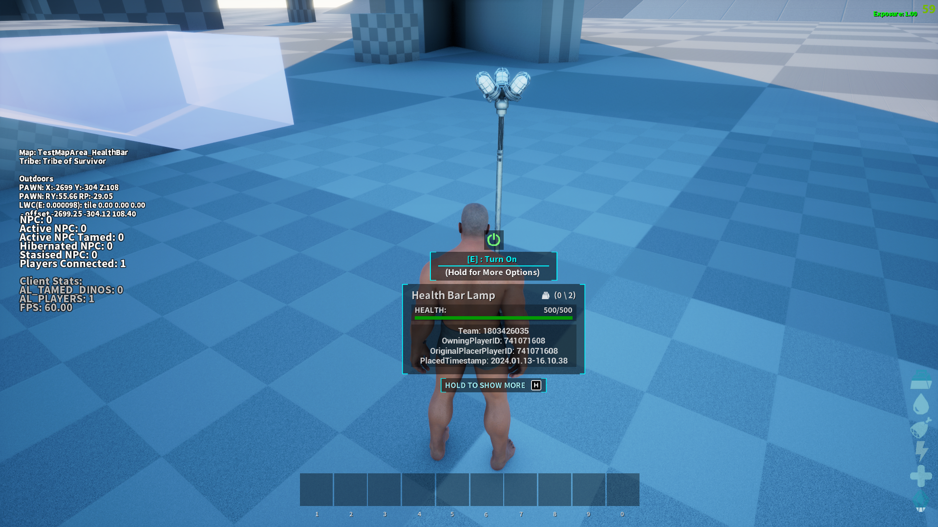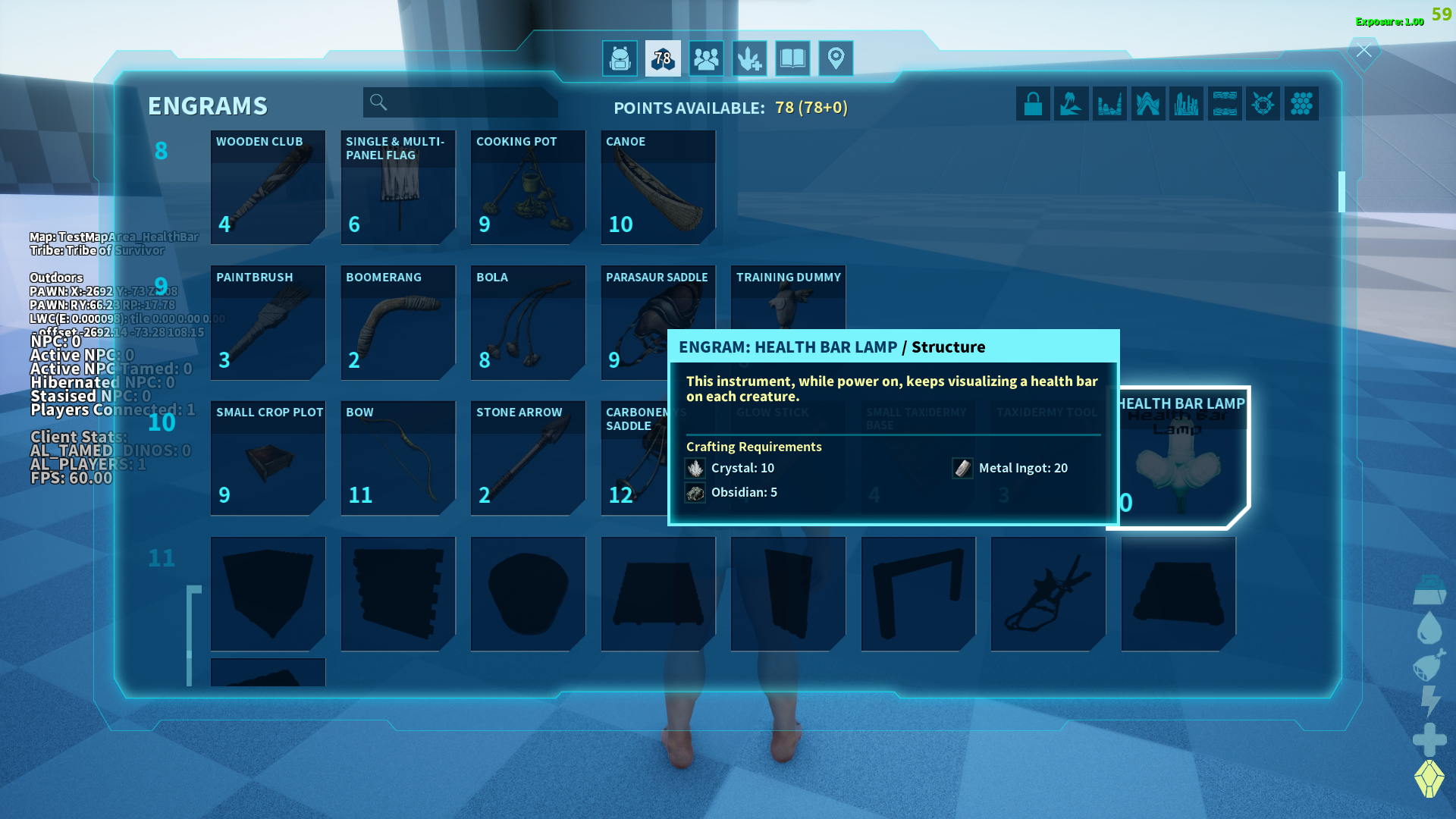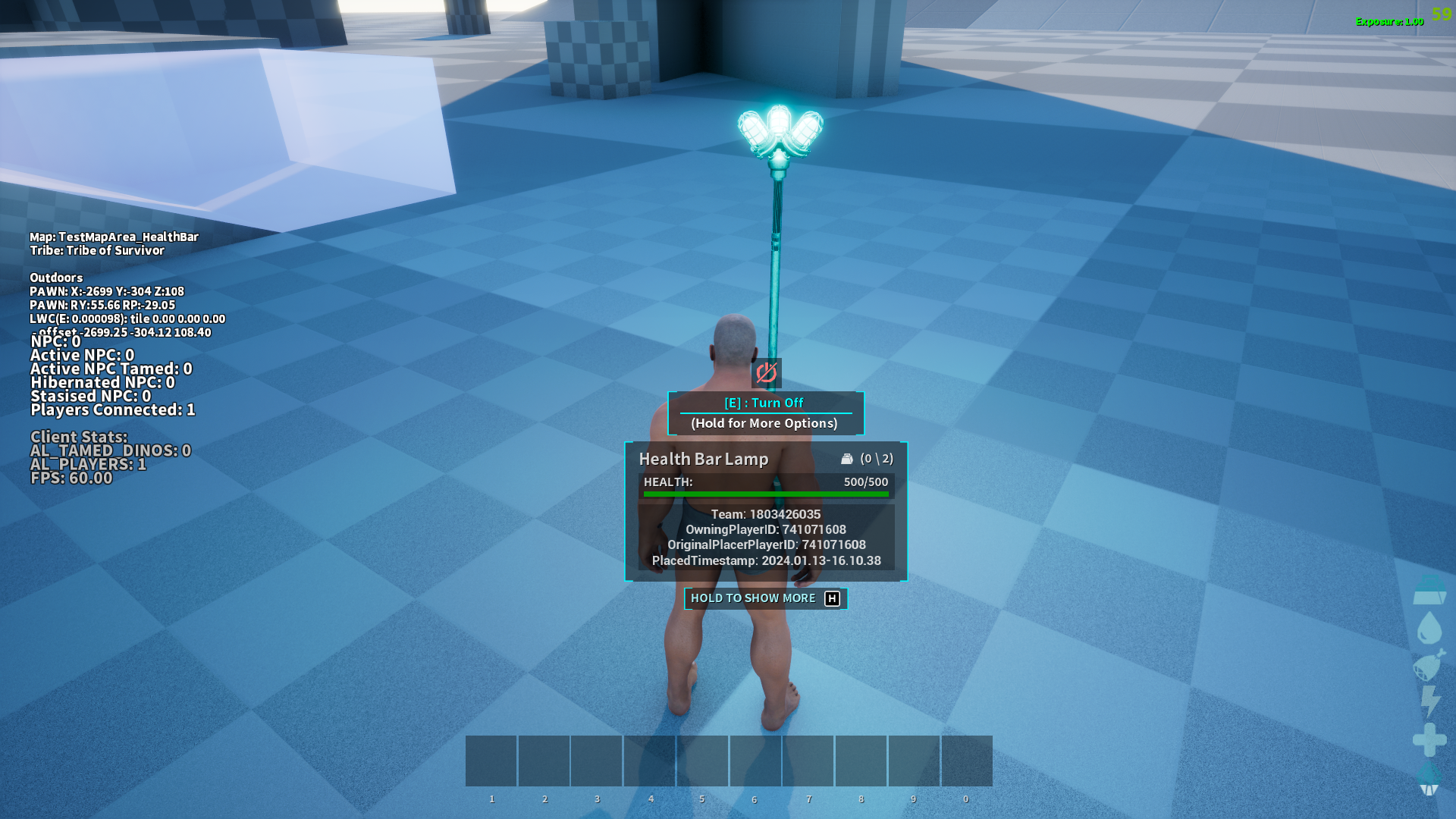 Author: cetusk1 Downloads: 7,314 File Size: 2.9 MB Created: 2024-01-14 Updated: 2025-05-27 Mod ID: 961478 Copied to clipboard Categories: General Structures Game Modes Health Bar Lamp Visualizing of dino health bar and some status Description Images Engrams Items Health Bar Lamp Images Apperance View dinos after turning on the structure. Turn On Turn on the structure. Put On Put the structure on the ground. Engram Engram information.