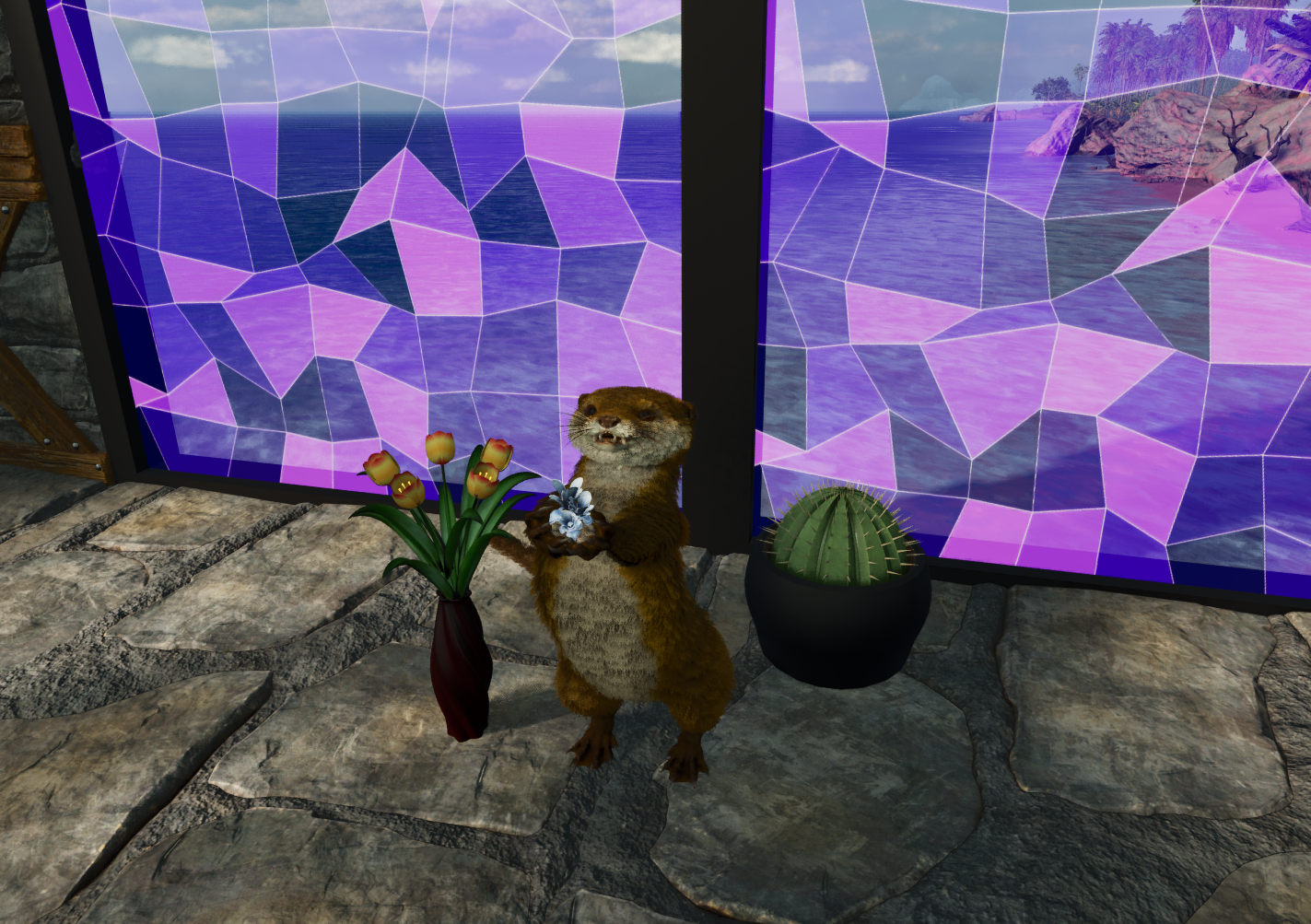 Otter with rare flowers