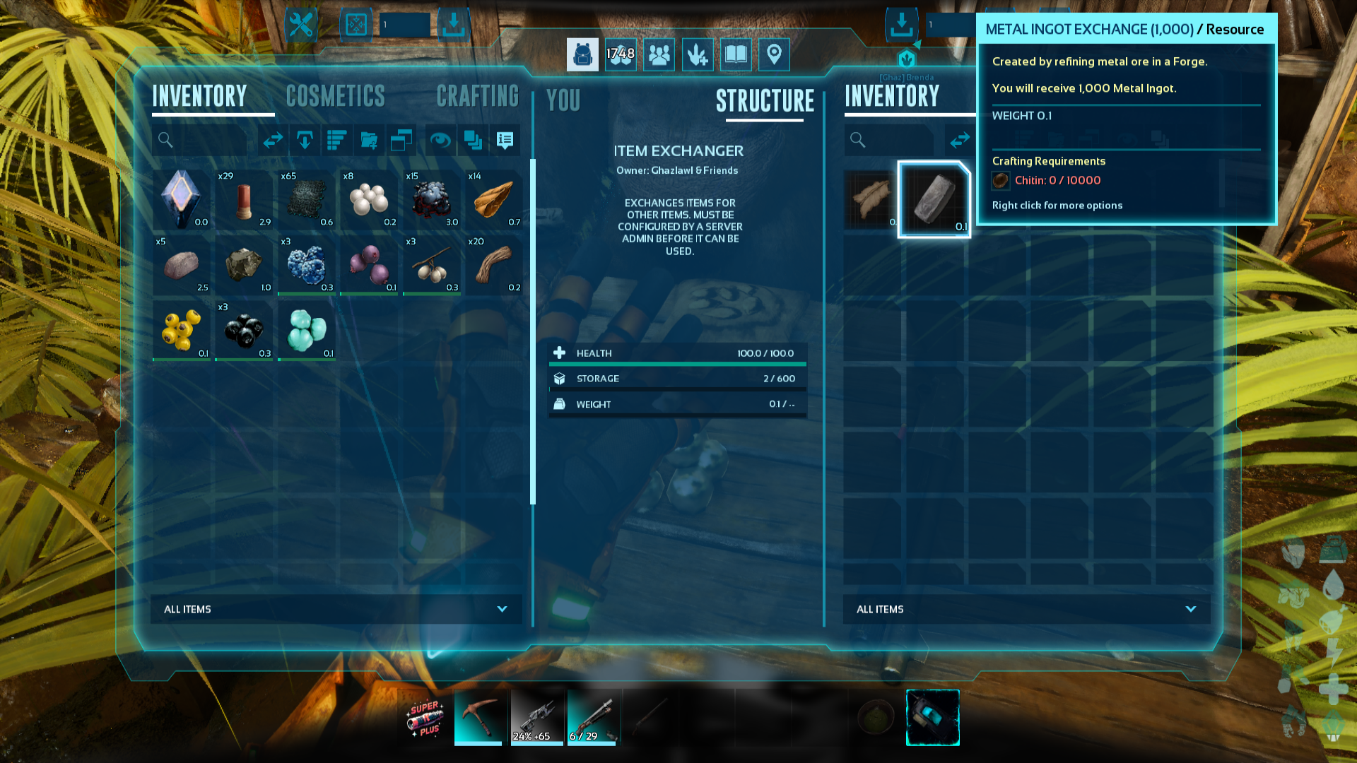 Author: Ghazlawl Downloads: 2,454 File Size: 125.0 KB Created: 2024-03-30 Updated: 2025-05-29 Mod ID: 994984 Copied to clipboard Categories: Rebalancing Structures Item Exchanger Exchanges items for other items. Description Images Engrams Items Item Exchanger Images Screenshot 2 Screenshot 1